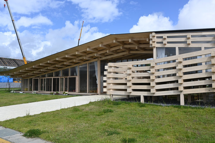 施設の3分の1に被災松が使用され、気仙大工の技術を用いて建設されました。