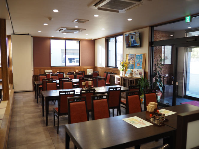 現在の本設店舗では、メニューも少し増やして提供している。宴会等の場合は100人まで入るキャパシティで、区切れば個室としても利用することができる。宴会の場合はコース料理を提供しており、予算に合わせて料理内容を変えることも可能だ。